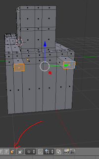 3. Setelah tahap pemotongan diatas langkah selanjutnya adalah melakukan Extrude / Menarik Objek . Pertama masuk kedalam mode face select setelah itu tandai objek yang mau di Extrude dengan menekan Shift + Klik kanan kemudian tekan E pada keyboard dan tarik keatas / Kedalam